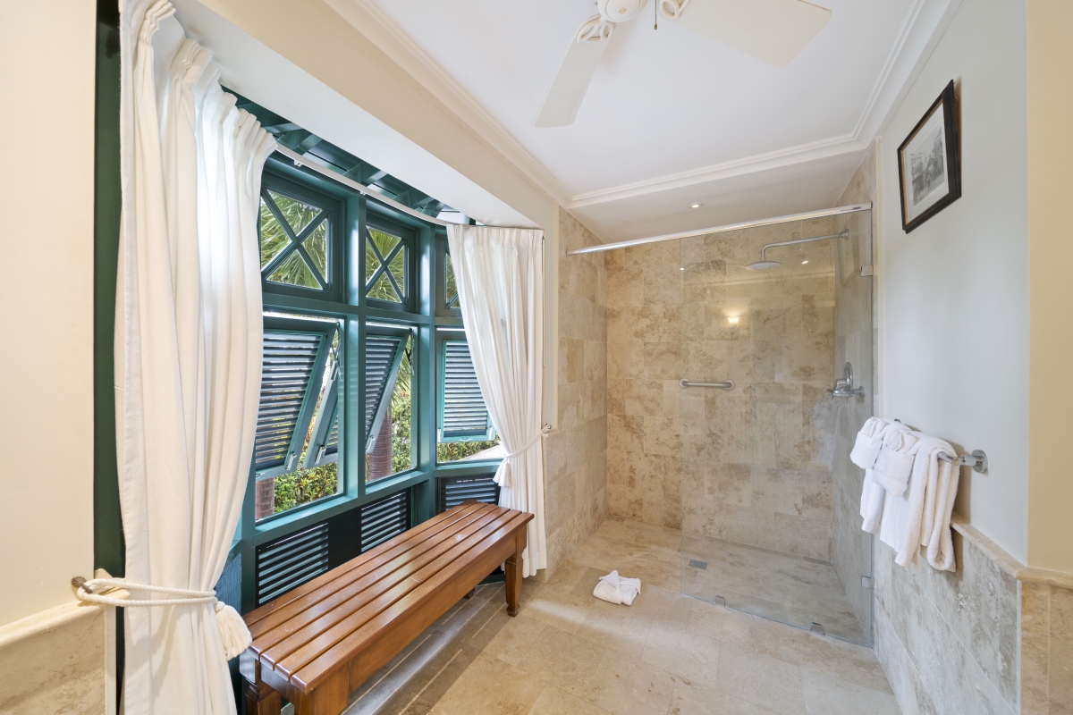 Stepping outside, you'll find Hummingbird's charming garden setting effortlessly flowing onto an expansive pool deck. The centerpiece of this outdoor haven is a generously sized free-form communal swimming pool, complete with a mesmerizing cascading waterfall. Beyond the villa's borders, the allure of the Mullins Beach, offering unparalleled swimming and water sports adding to the experience of your stay.