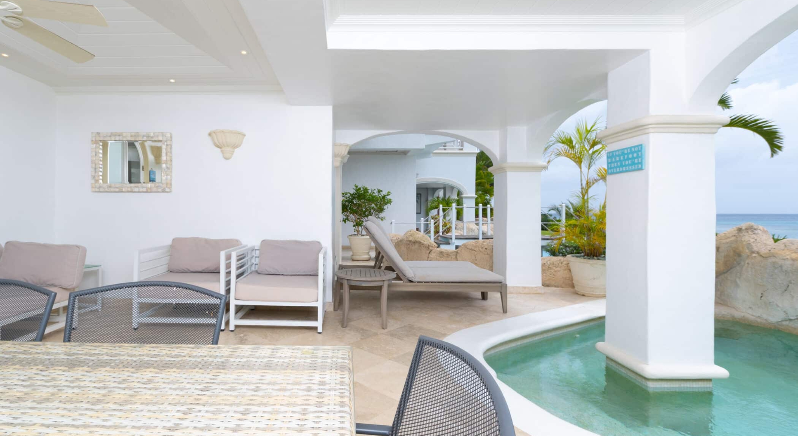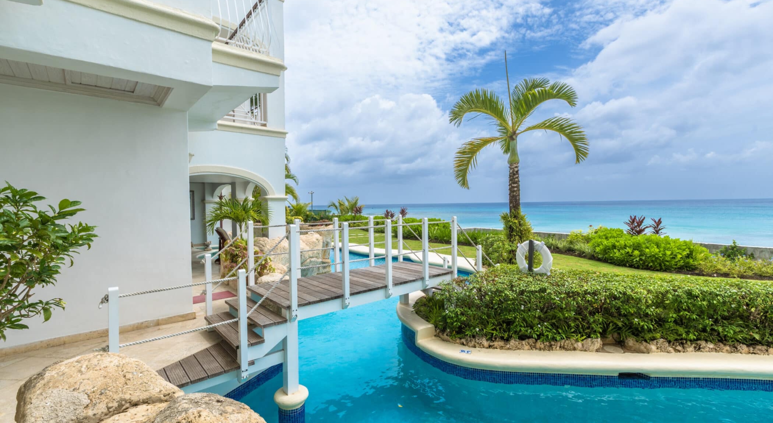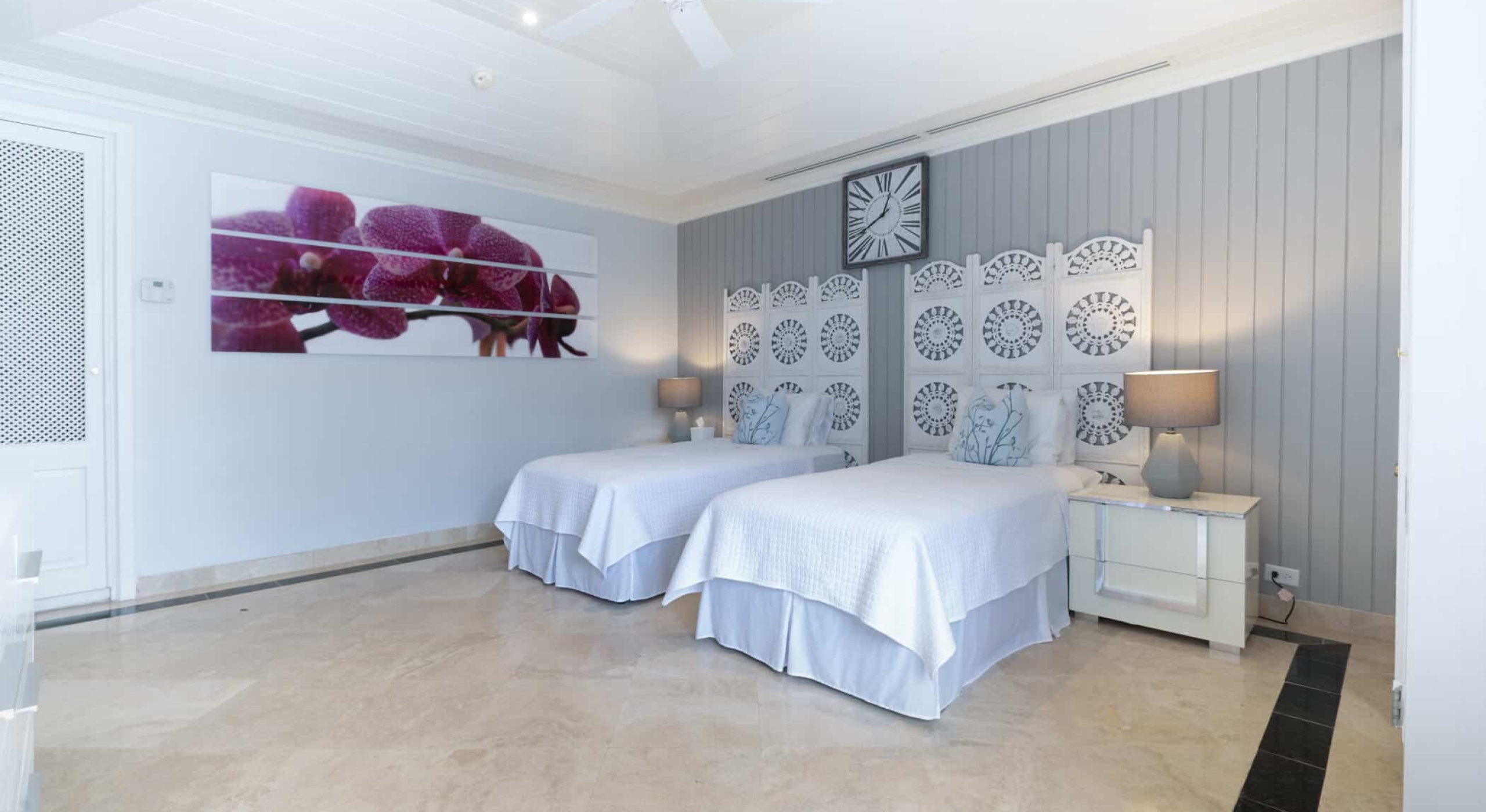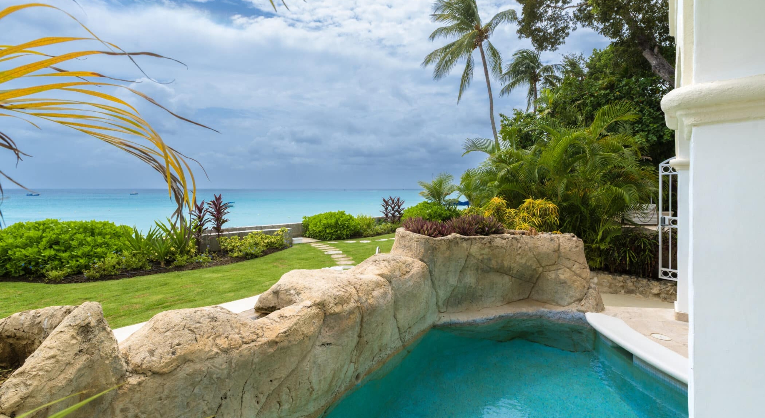 Surrounded by tropical landscaping, the residence also shares access to a serene lagoon style swimming pool nestled within the garden grounds. Just beyond, the powdery sands of Paynes Bay Beach await, complete with plush sun loungers, shaded umbrellas, and discreet beach butler service that anticipates your every need.