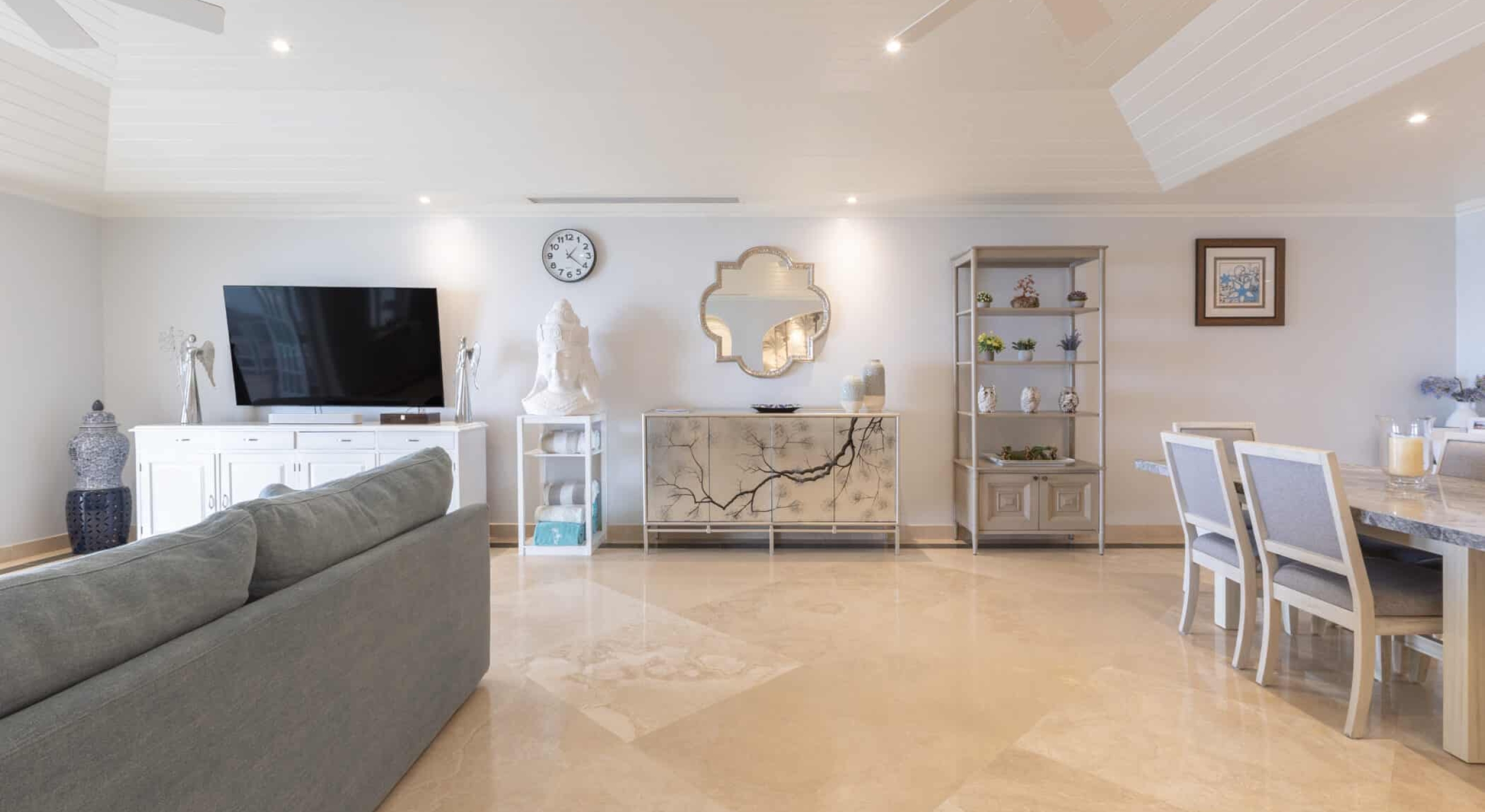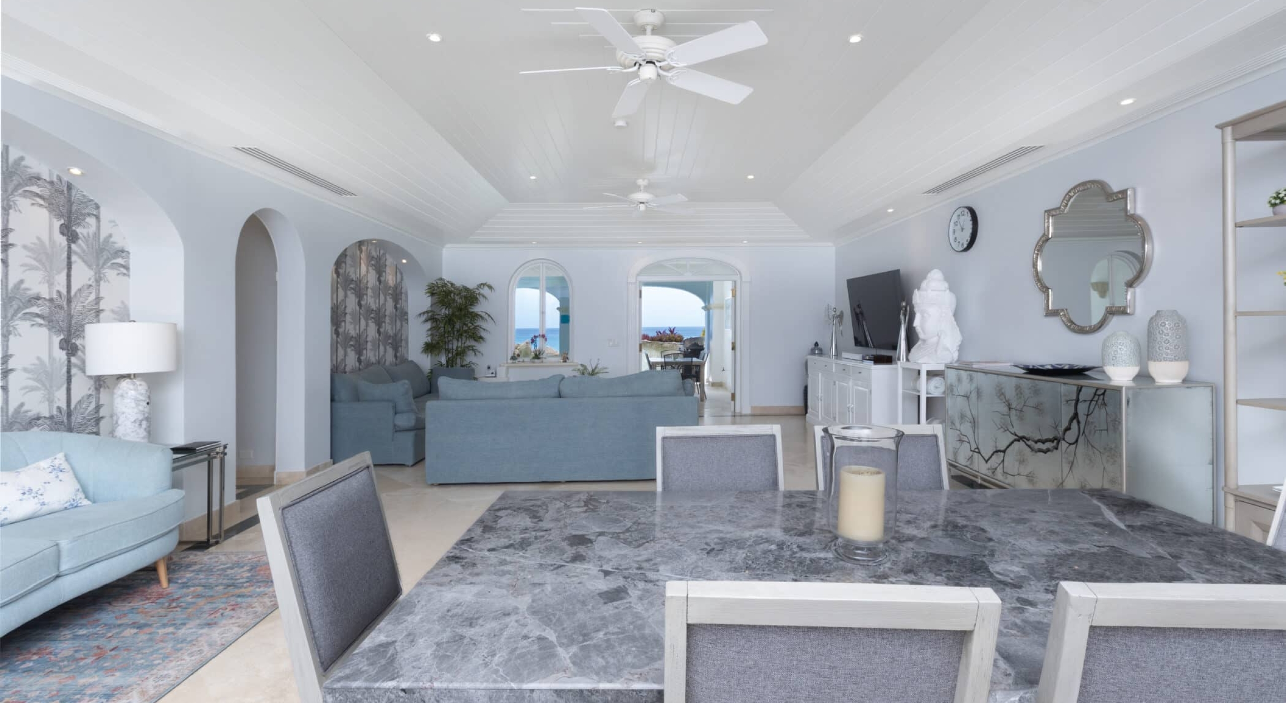 Sundance is a beautifully designed two-bedroom beachfront apartment, where refined comfort meets Caribbean charm. This spacious, fully air-conditioned residence boasts sweeping, panoramic views of the turquoise Caribbean sea from both the master bedroom and the open-plan living and dining areas, setting the stage for a truly unforgettable island escape.