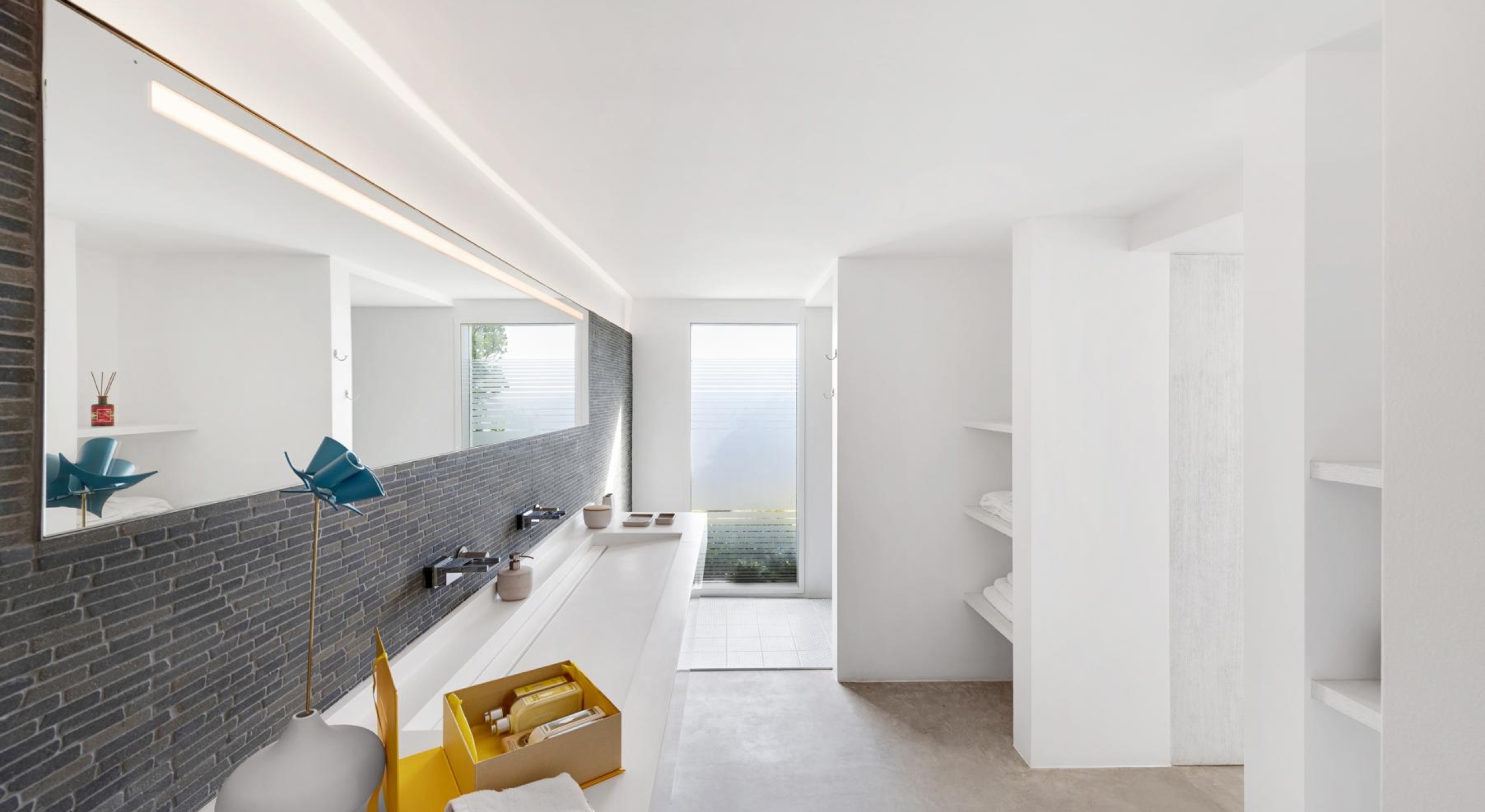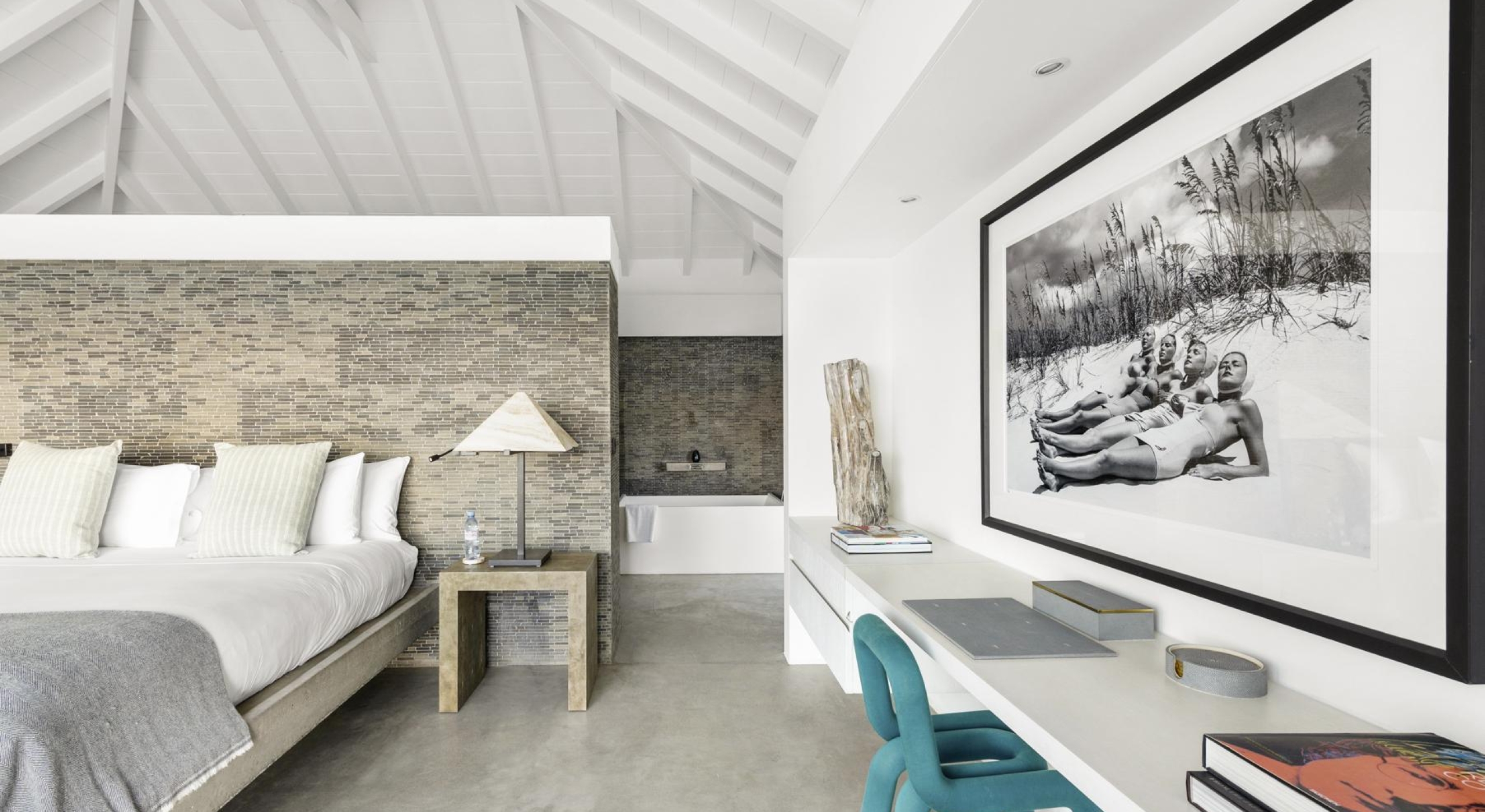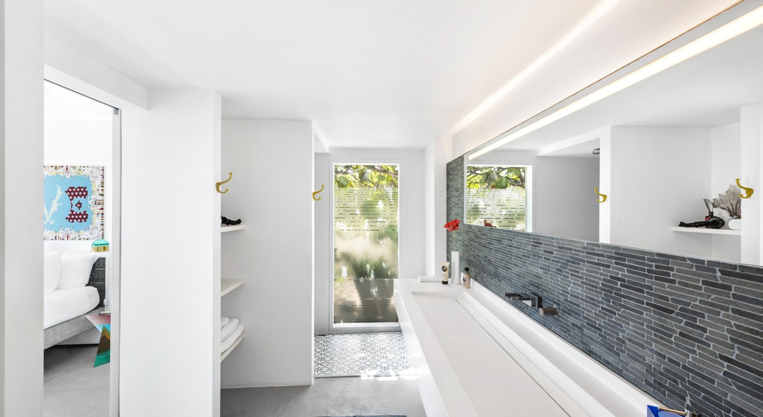 The villa features six independent suites, spread across the main house and a secondary pavilion. Each offers its own terrace, en-suite bathroom, and a refined design that blends modern comfort with understated elegance.