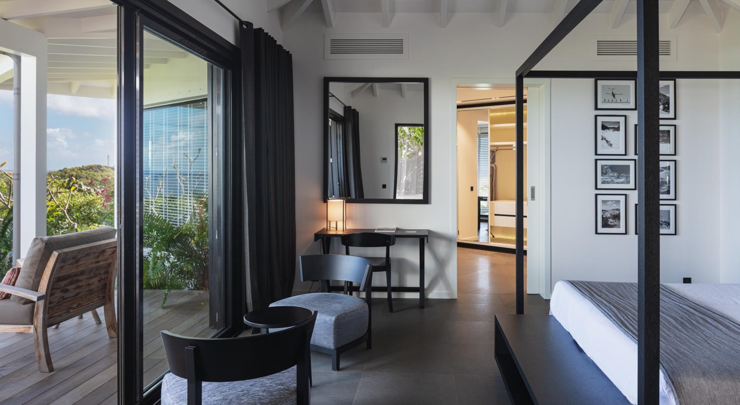 The long heated pool, the covered terrace, the large living, everything has been designed for you to relax and rest. The five bedrooms, in separated bungalows with an access by the terrace have a private terrace. The fourth and fifth bedrooms may be connected.