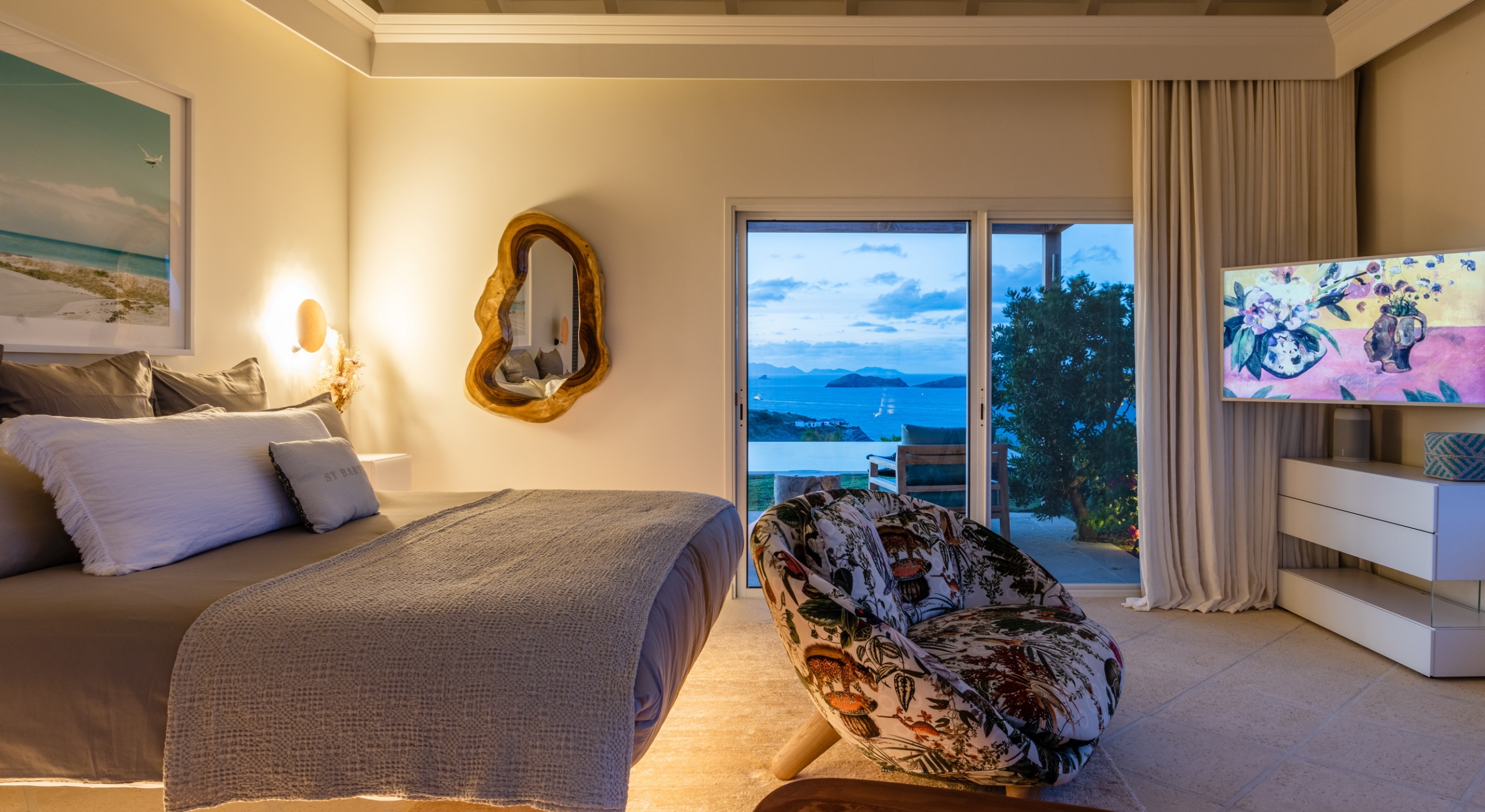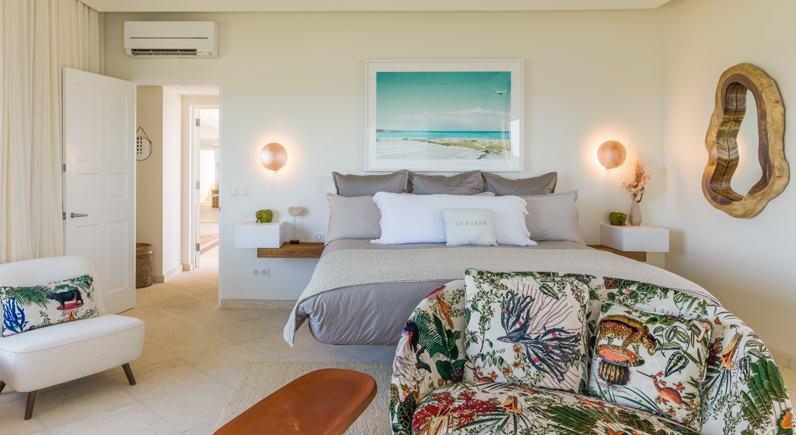The first two spacious bedrooms, all in elegance, will also offer you a magnificent view of the ocean. Each room is equipped with an office area, a private terrace, a bathroom with double sinks and a walk-in shower.