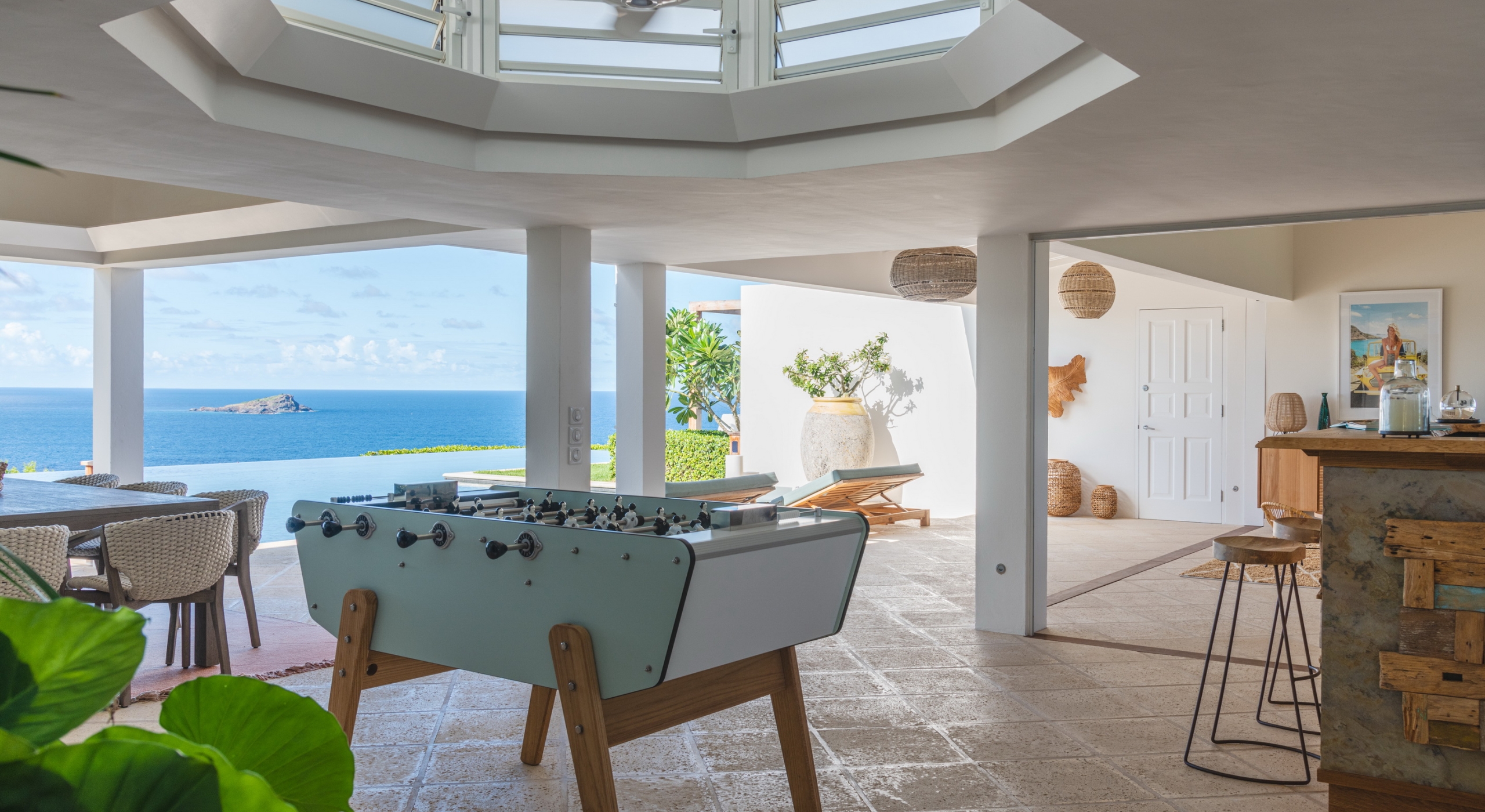 Its well-equipped kitchen and wine cellar will make you crave French cuisine. A living room, a bar and a foosball occupy the living space opened on the outside and the terrace. It is just perfect for a moment of relaxation or a convivial evening of cocktails and wine. The outdoor dining table will be perfect for family meals and inviting friends.